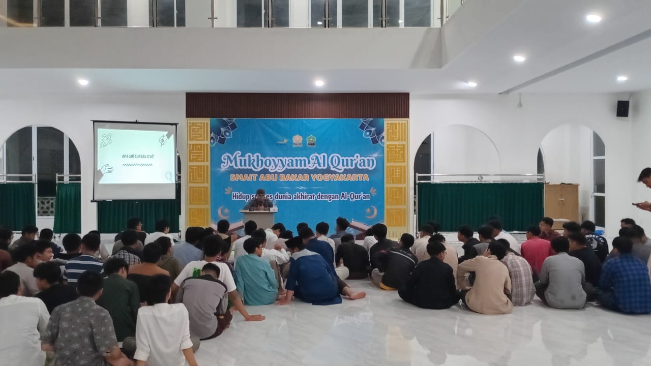 Yogyakarta — SMAIT Abu Bakar Yogyakarta kembali menggelar salah satu program unggulan pembinaan karakter siswa, yaitu Mukhoyyam Al Qur’an ( MQ). Kegiatan diselenggarakan selama dua hari Jumat–Sabtu, 24–25 Oktober 2025 dengan lokasi siswa putra dan putri secara terpisah. Mengusung tema “Hidup Sukses Dunia Akhirat dengan Al Qur’an”, kegiatan ini bertujuan menumbuhkan kecintaan mendalam kepada Al Qur’an serta membangun kebiasaan ibadah yang konsisten sebagai bekal menghadapi tantangan masa depan. Kepala sekolah, Firman, S.Si dalam sambutanya menekankan kembali pentingnya kegiatan MQ sebagai program sekolah yang selalu dilaksanakan untuk menguatkan interaksi siswa terhadap Al-Quran, dan sebagai program pendukung untuk suksesnya target hafalan yang ditetapkan sekolah.